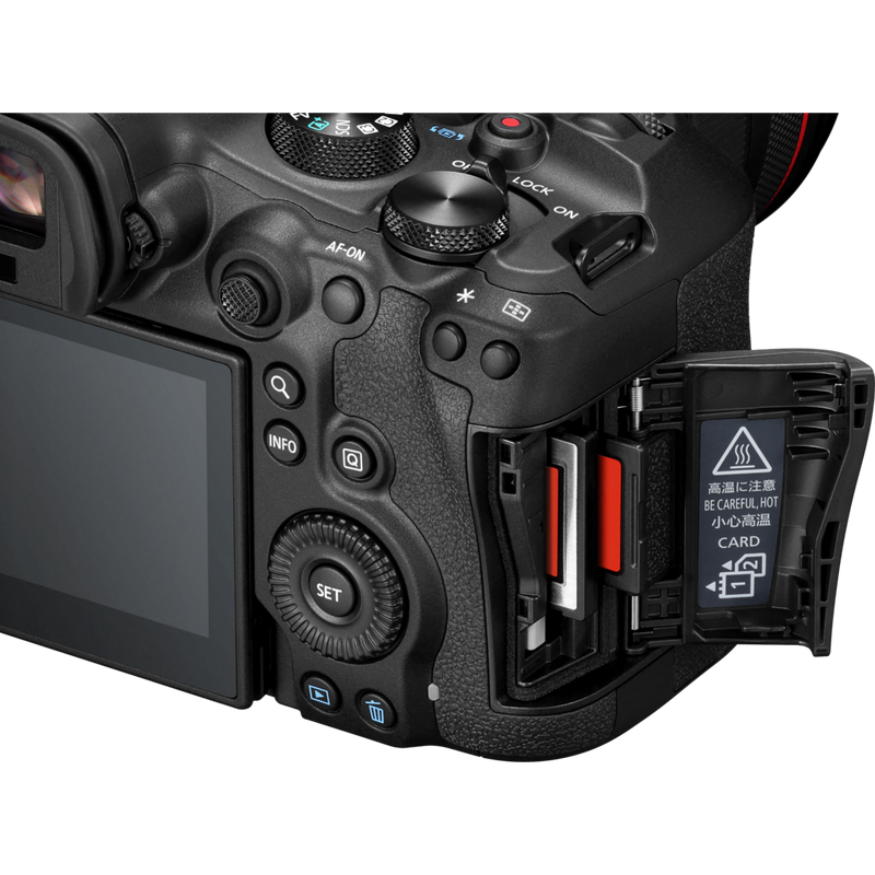 Paranna tiedostojen organisointia ja varmistusta käyttämällä EOS R6 Mark III -kameran kahta korttipaikkaa. Nopeaan, suuren kapasiteetin CFexpress Type B -korttiin mahtuu jopa 8 Tt pitkäkestoisessa kuvauksessa, ja yleisesti käytetty UHS-II SD -kortti tarjoaa käyttömukavuutta ja helppoa saatavuutta. Voit esimerkiksi käyttää jatkuvaa tallennusvälineen vaihtoa ja proxy-tallennusta tai pitää valokuvat ja videot järjestyksessä tallentamalla ne eri korteille.